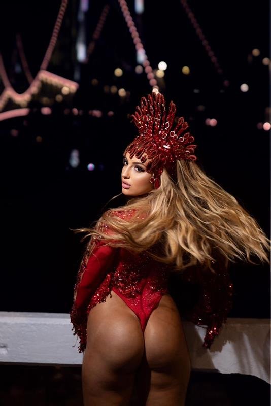 Para o ensaio técnico, Sarah surgiu com figurino assinado pelo Ateliê da estilista Eunice Fernandes, desenvolvido especialmente para valorizar a identidade da escola e a força estética do desfile. A fantasia reúne riqueza de detalhes, acabamento artesanal e uma leitura contemporânea do Carnaval, antecipando o impacto visual que a Consulado pretende levar para a avenida.